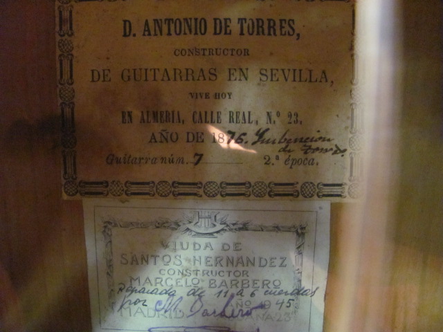 これは、前述のトーレス本の35ページに掲載されている11弦ギターそのものなのです!えっ!?普通の6弦じゃないか!と思うでしょう・・・本に掲載されているものと全く同じギターなのですが、1945年に銘工マルセロ・バルベロが6弦ギターに手直し調整したモデルなのです。マルセロ・バルベロが調整したなんて、これまたすごいじゃありませんか!!