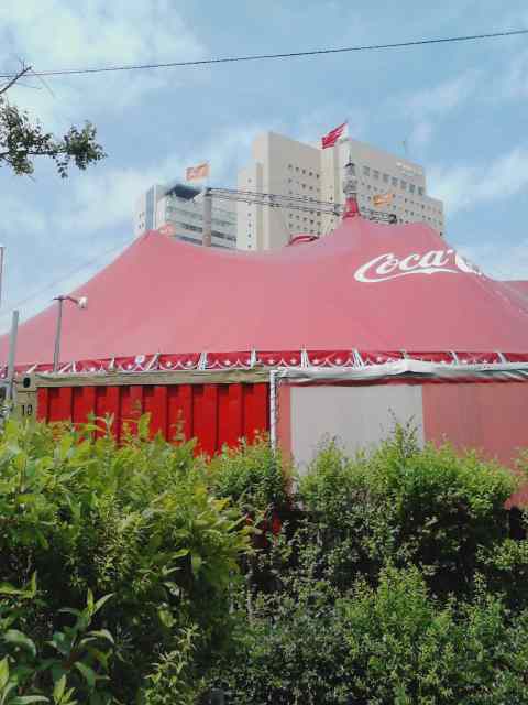 会場近くの駐車場に車を入れて、サーカスのテントを眺めると・・・