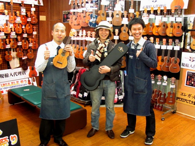 写真は明日からのウクレレ祭りより一足先にお買い上げいただいたOさん。この写真をフェイスブックに載せてくれるそうです。