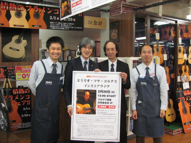 本日はフラメンコギタリストの最高峰であるスペイン人の「エミリオ・マヤ・コルテス」氏の店内コンサートを行いました。世界でも屈指のギタリストが見れるとあって多数のお客様がご来店されました。